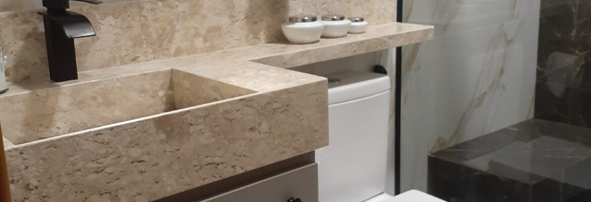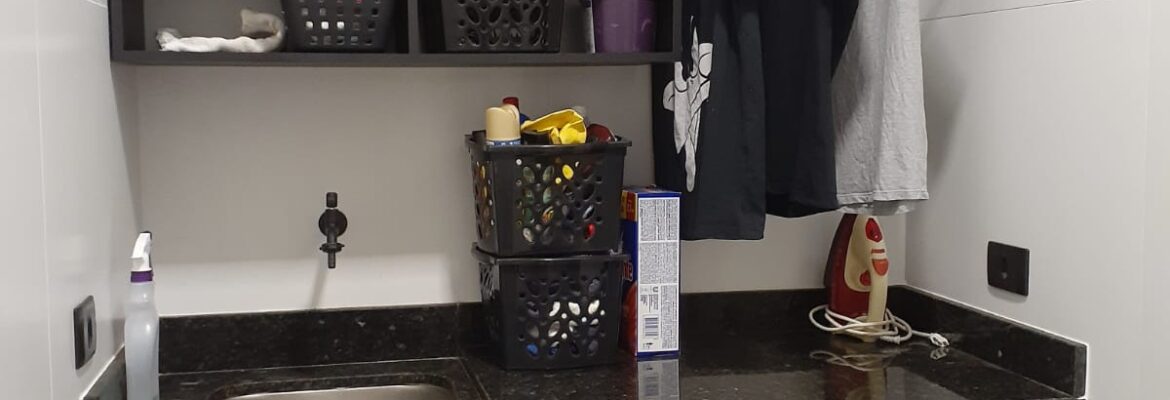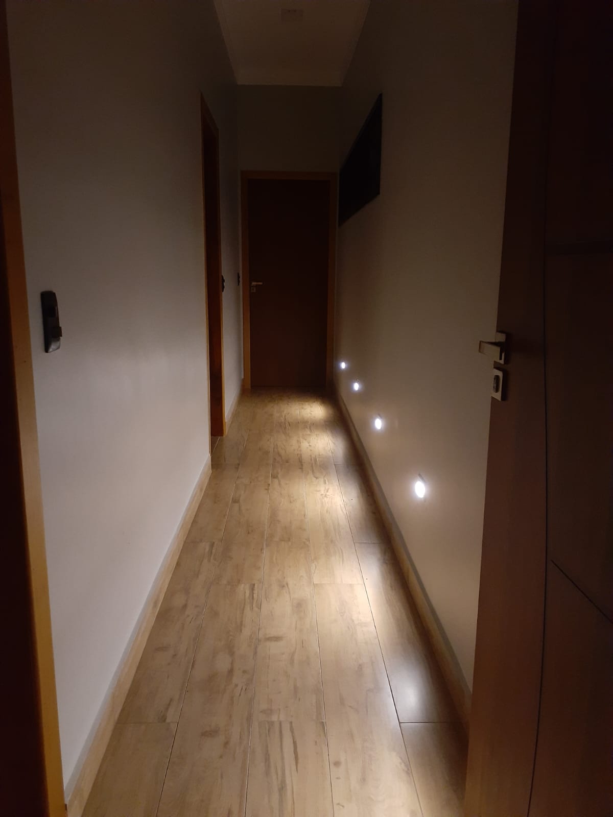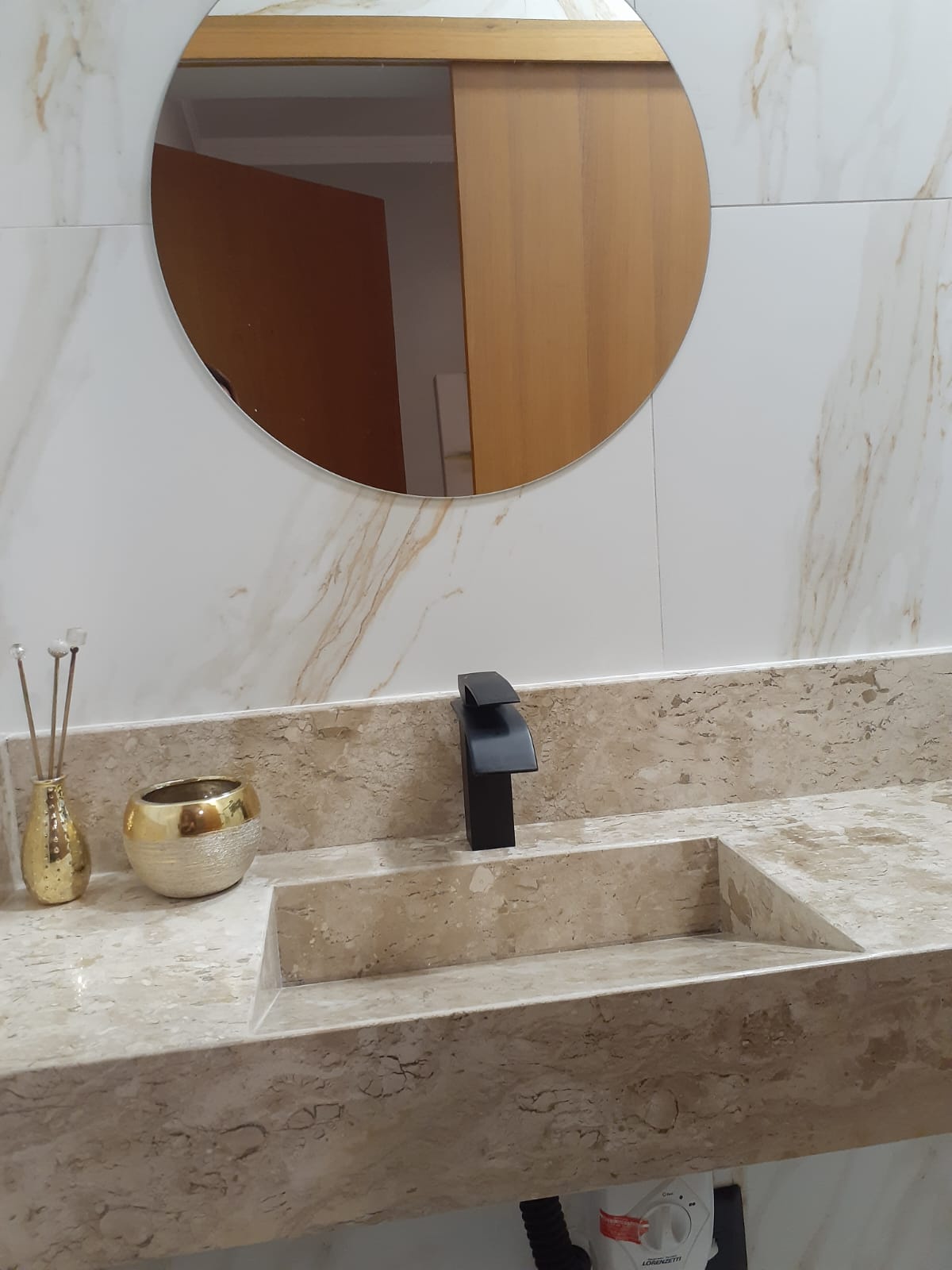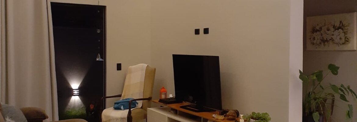 - Cozinha moderna com ilha, totalmente integrada à sala de estar e TV
