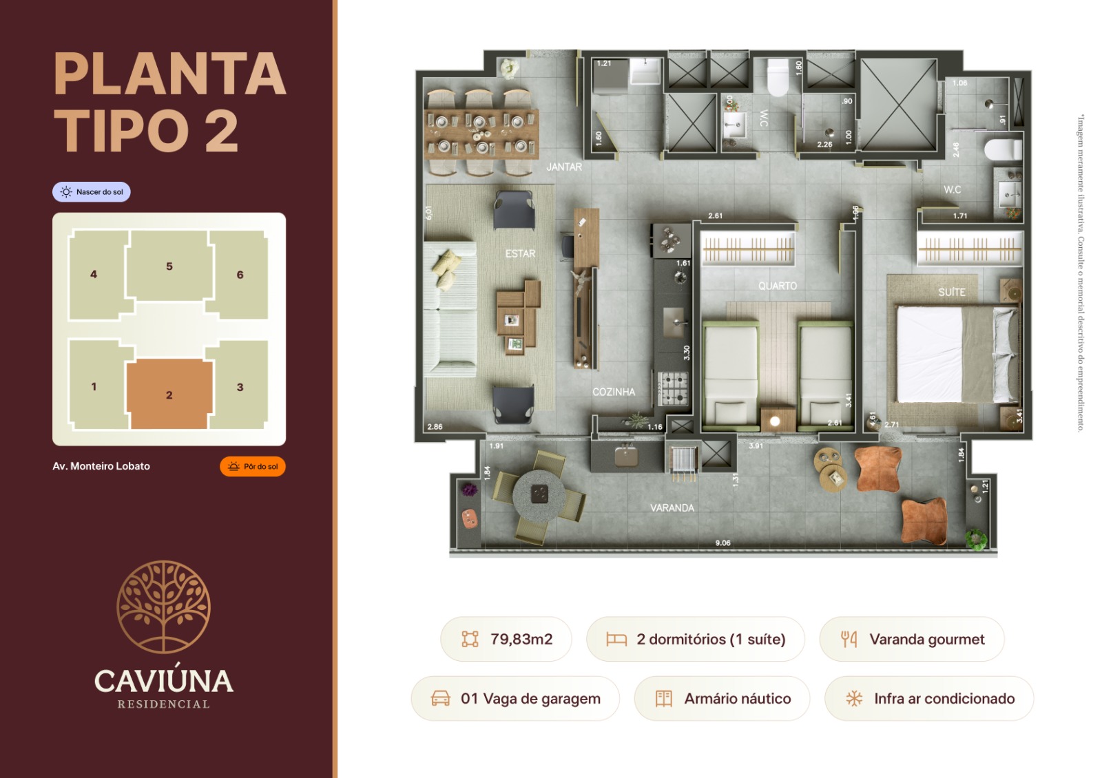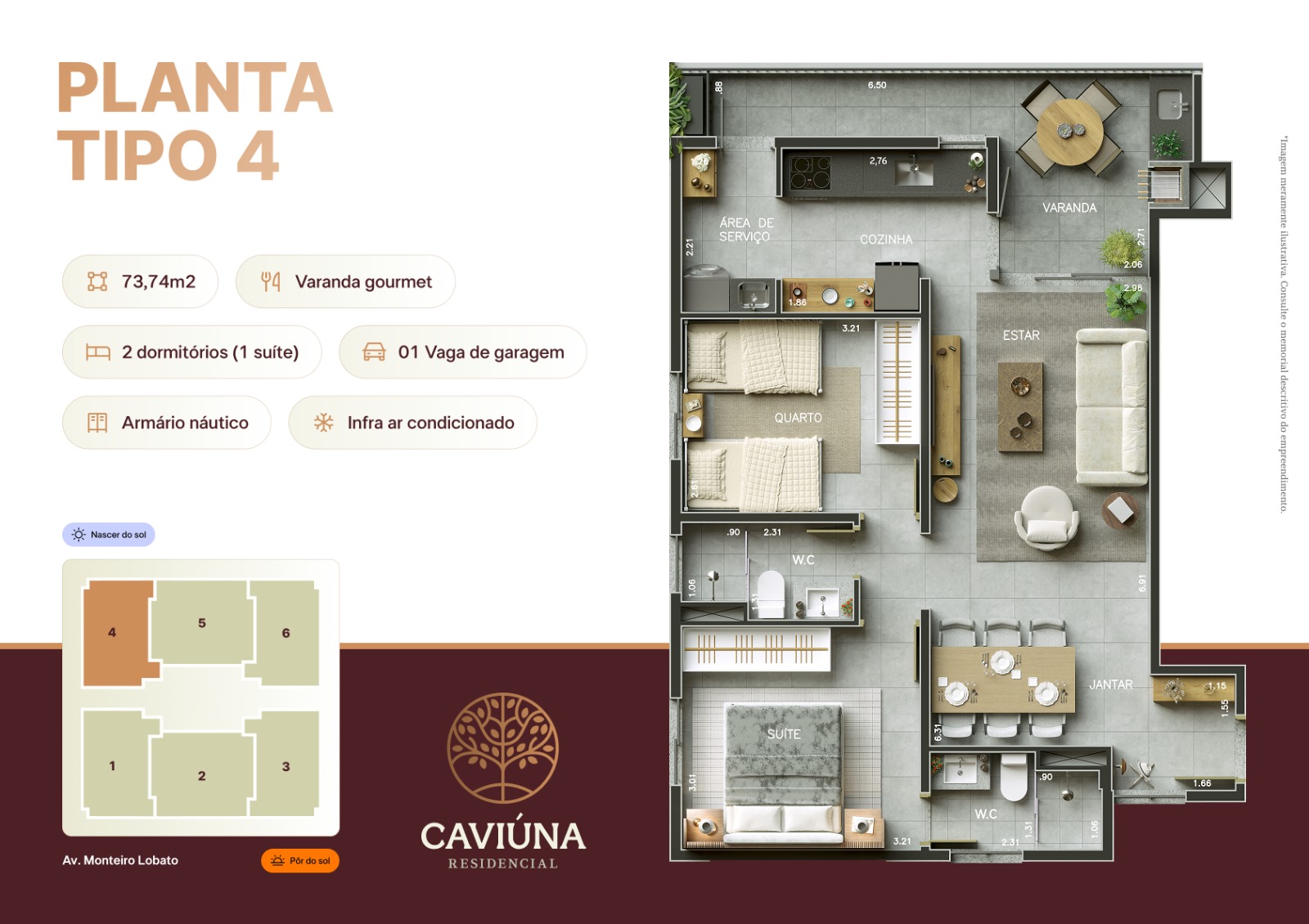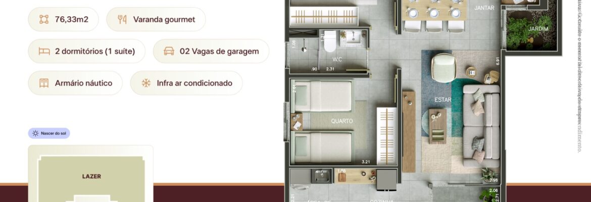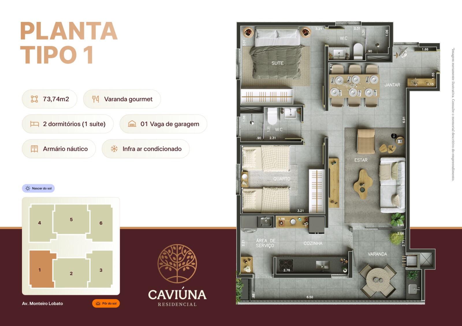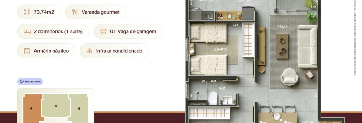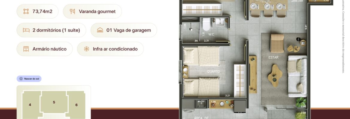 Apartamento tipo: 74m² e 80m²