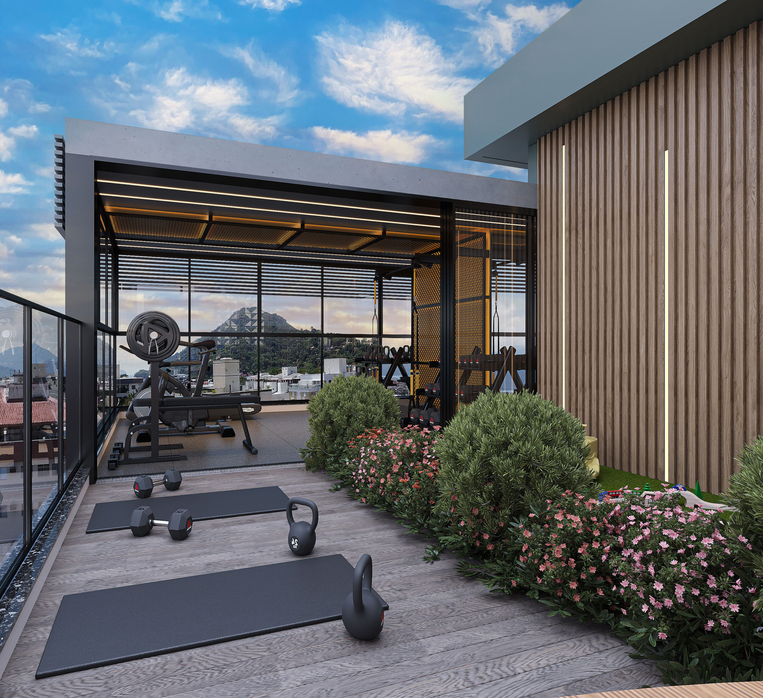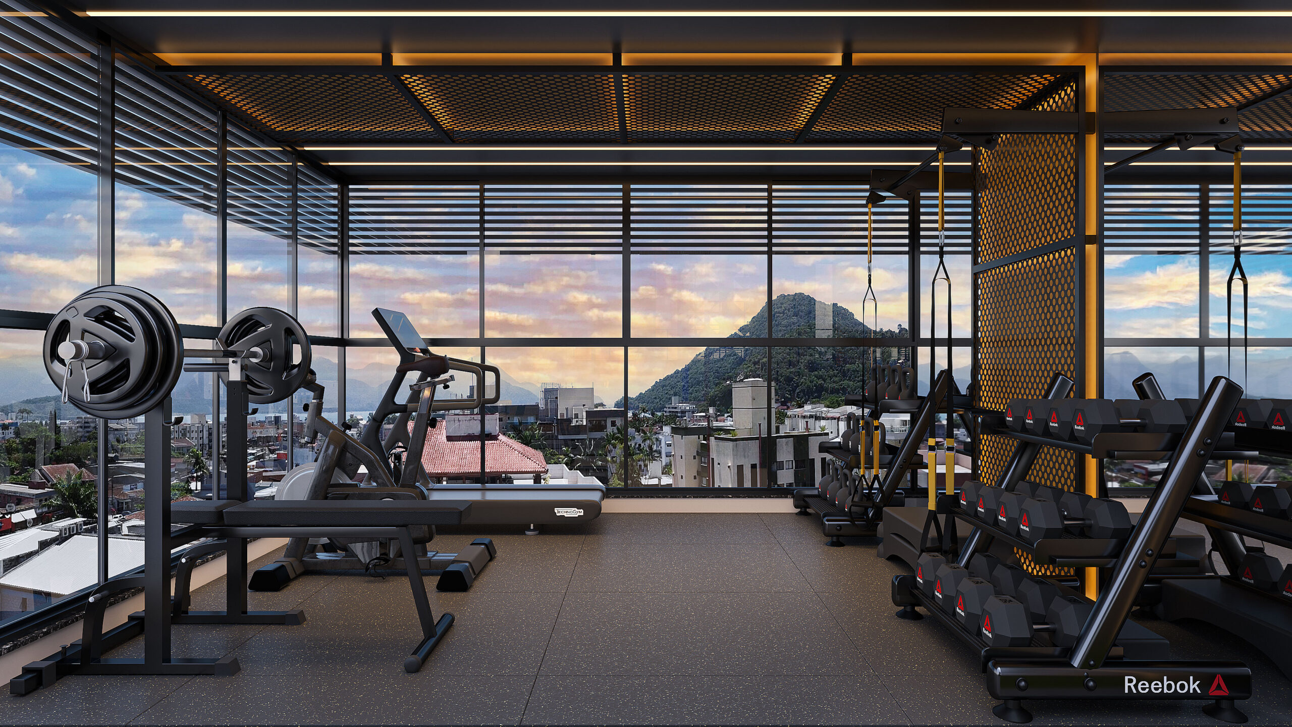✅ Ambiente fitness com design fluido e circulação de ar natural