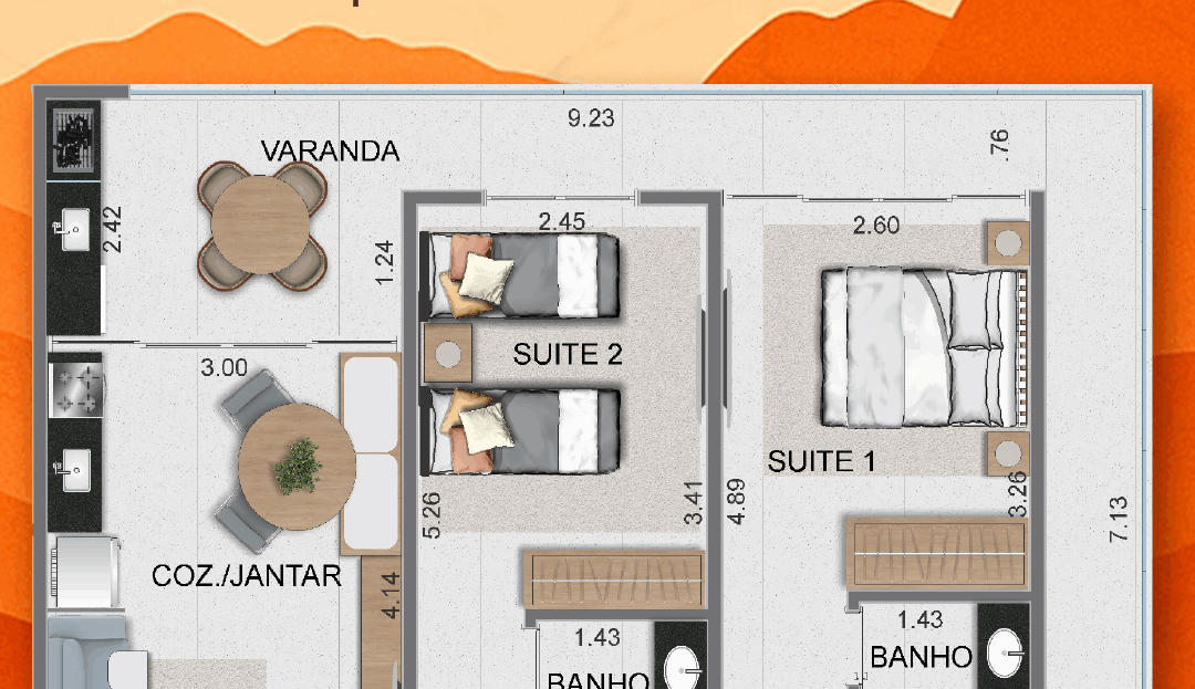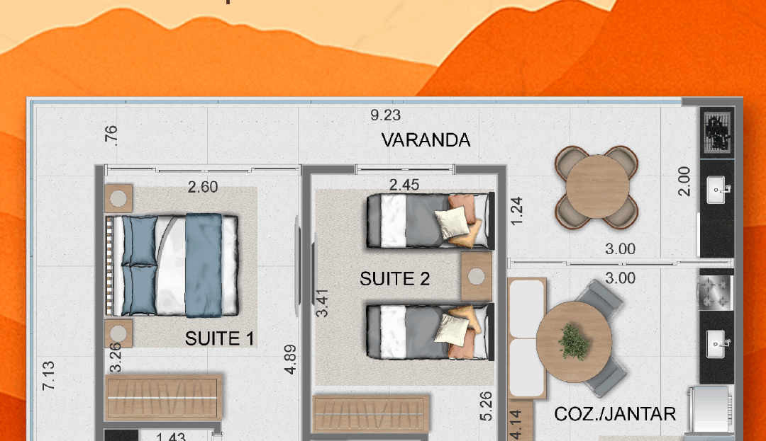Cobertura final 3: 92m²