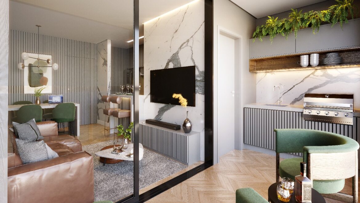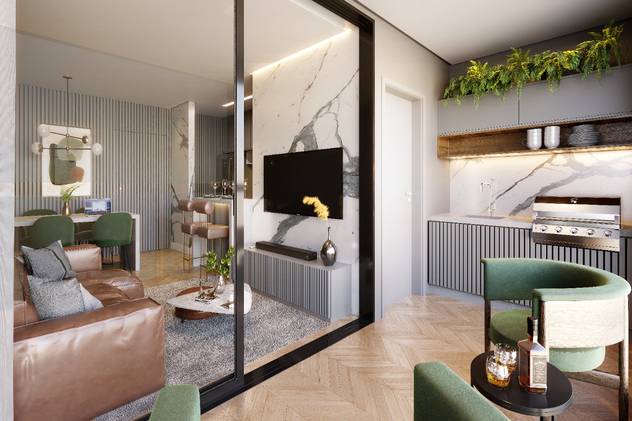 ✔️Varanda gourmet com churrasqueira e conceito aberto