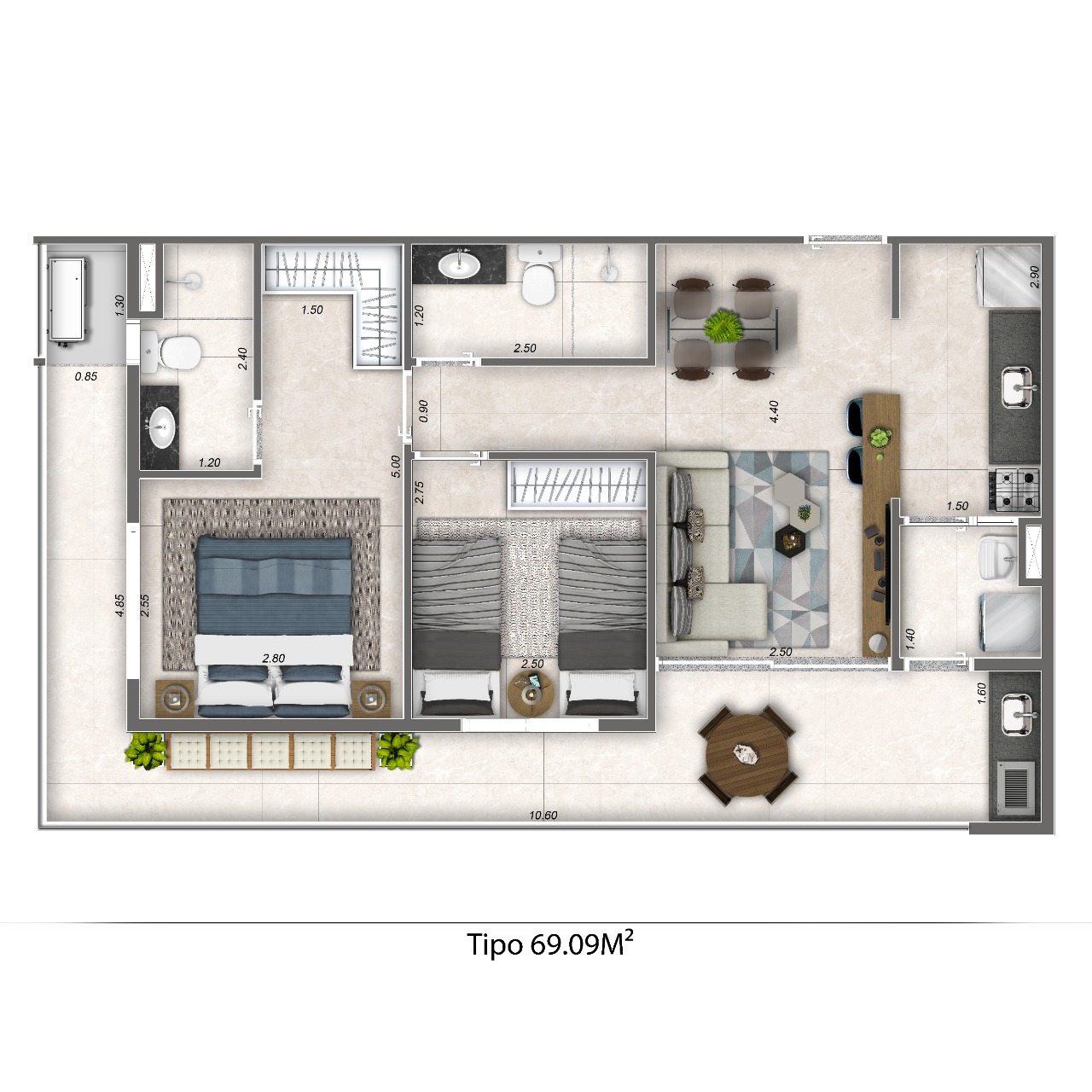 Apartamentos Tipo 3º ANDAR 69m²